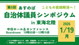 1月19日(月)午前、名古屋市栄の中日ビルで「第5回あすのば自治体議員シンポジウムin東海北陸 」を開催します。