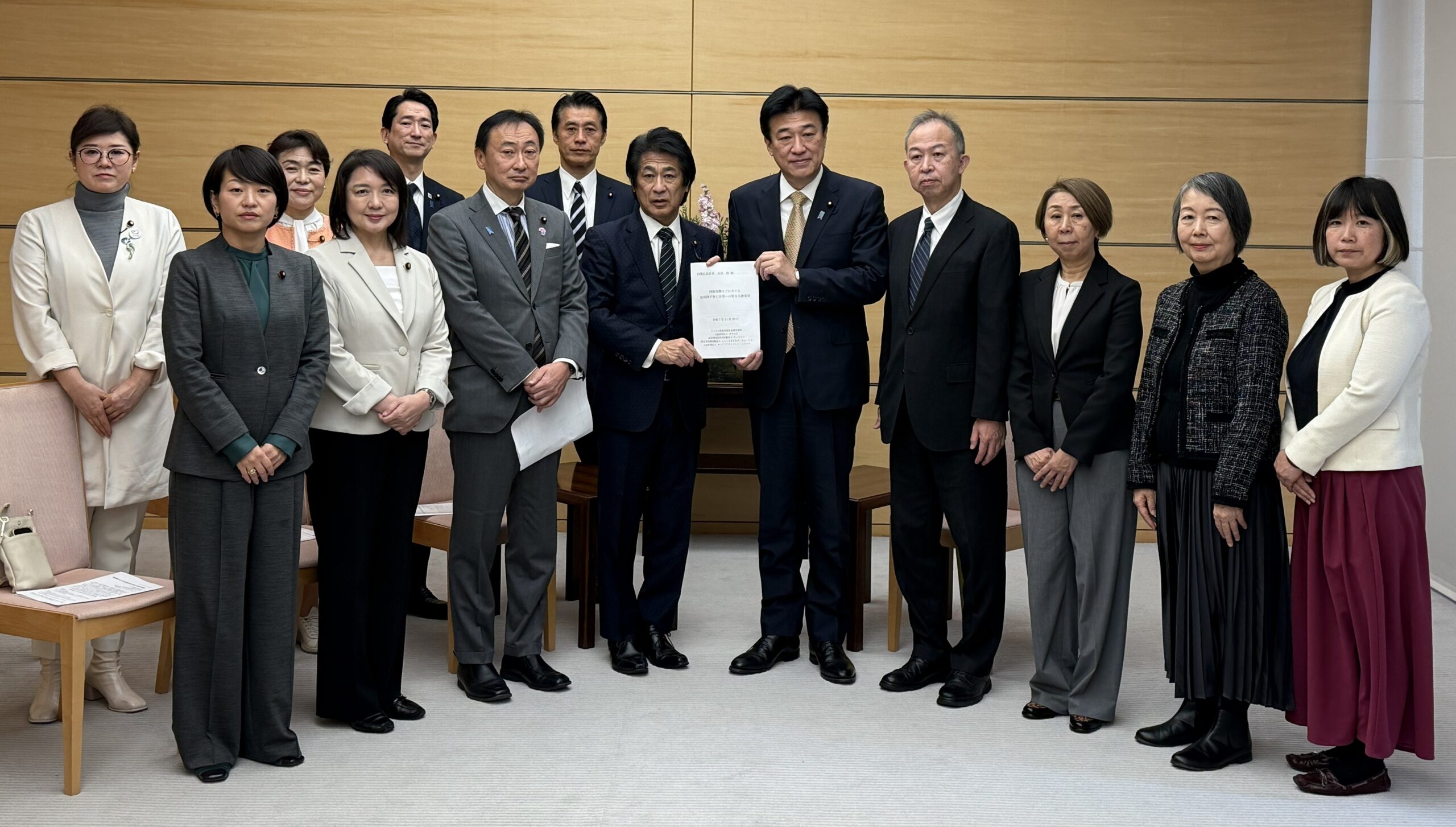 要望書は、議連と「あすのば」を含む4団体が連名で、小河光治代表らも同席し、厳しい実態などの説明も含め、木原長官に陳情しました。