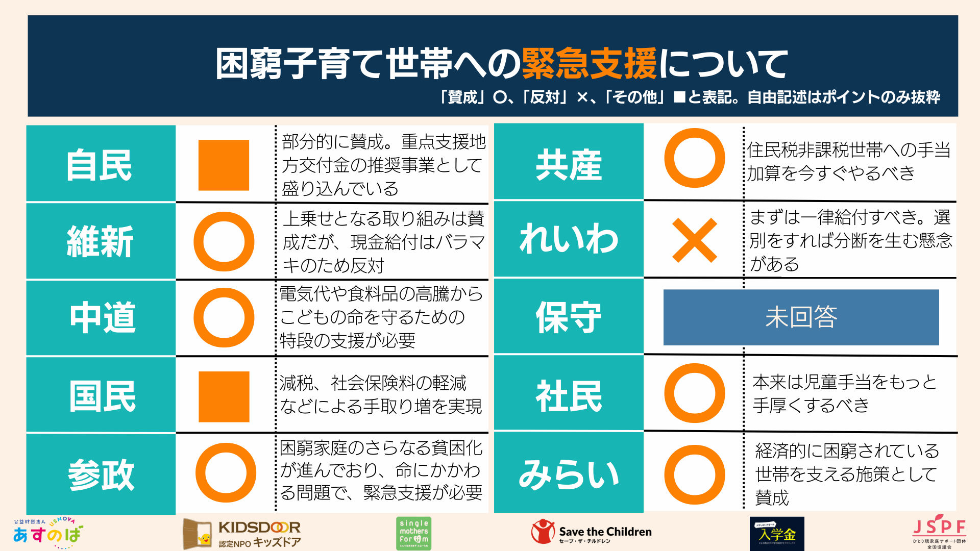 こどもの貧困対策6団体2026衆院選政策アンケート係